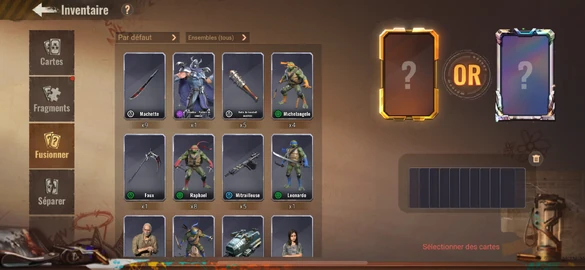 - Les cartes excédentaires peuvent être démantelées pour obtenir des tickets de fusion de cartes.